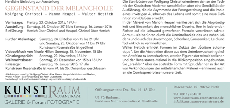 Im Zuge der Gemeinschaftausstellung "Gegenstand der Melancholie" von Wolfgang Christel, Manon Heupel